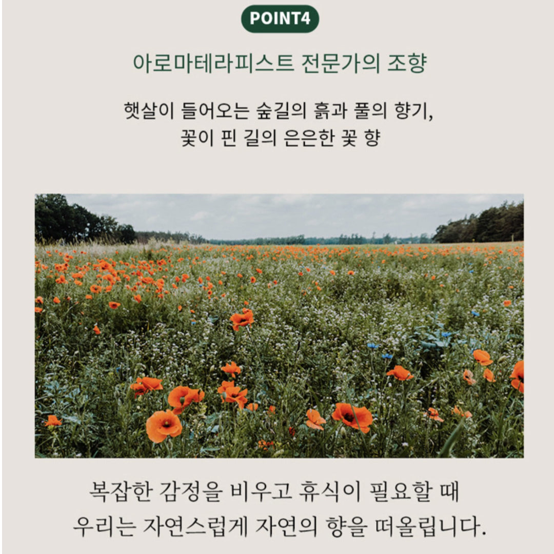 - The scent of soil and grass on the forest road where the sunlight enters, and the delicate scent of flowers on the flowery road