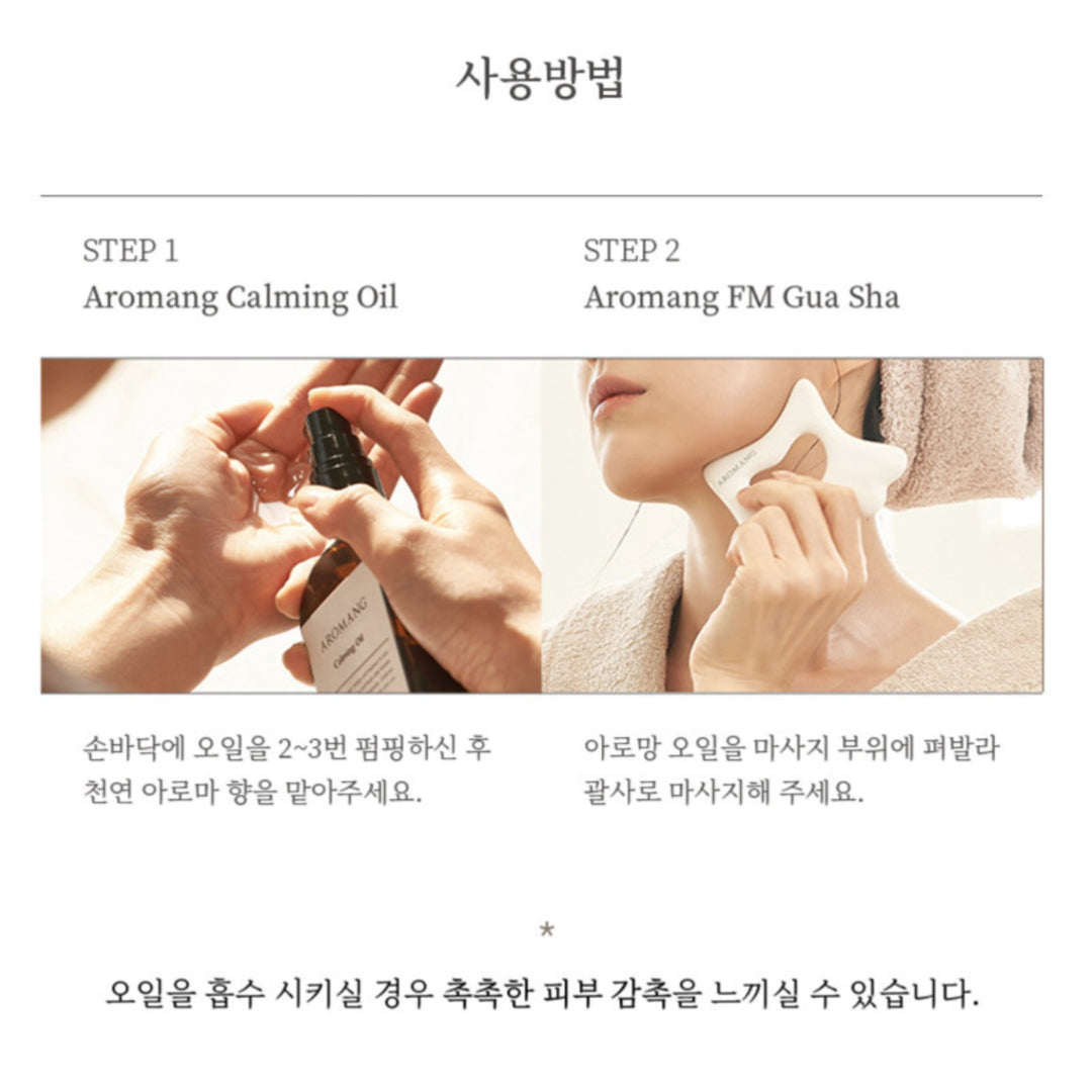 Step1: After pumping the oil 2-3 times on the palm, spread it evenly over the massage area. (Aroman Calming Oil can have a good effect)