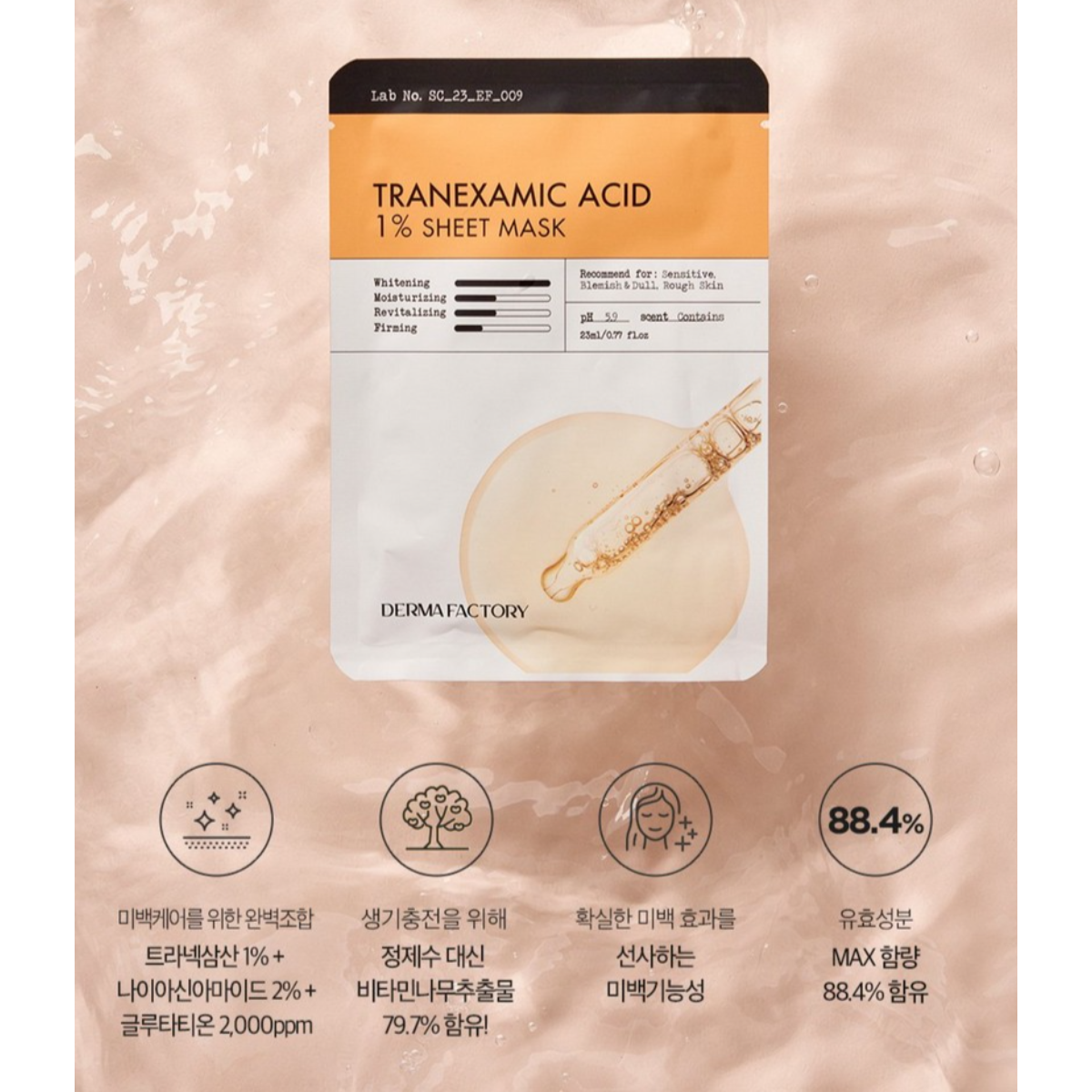 Derma Factory Tranexamic Acid 1% Sheet Mask Facial Mask Pack 5 sheets/set Melasma Pigmentation Uneven skin tone / from Seoul, Korea