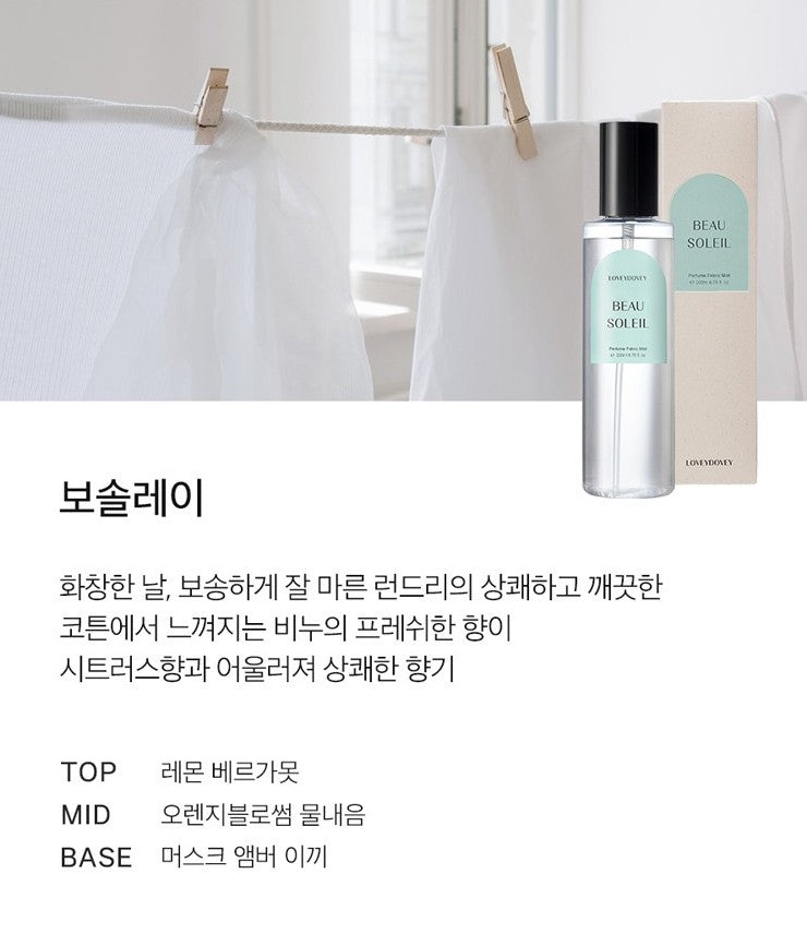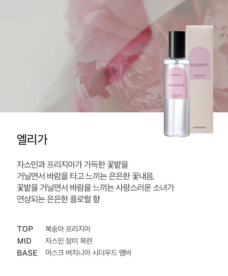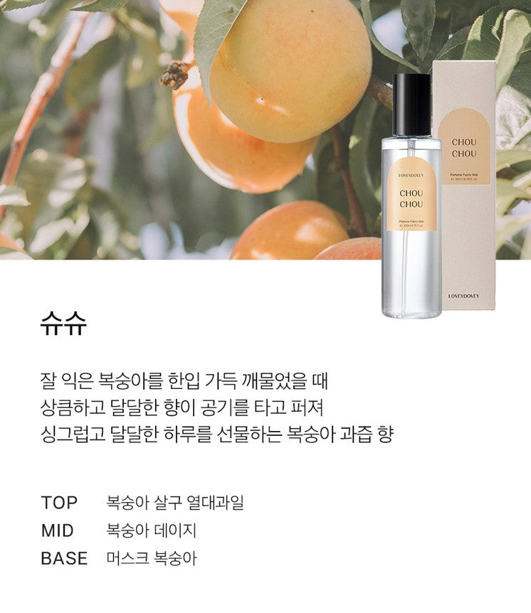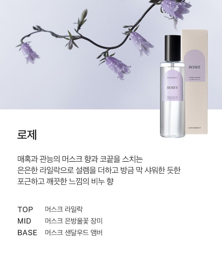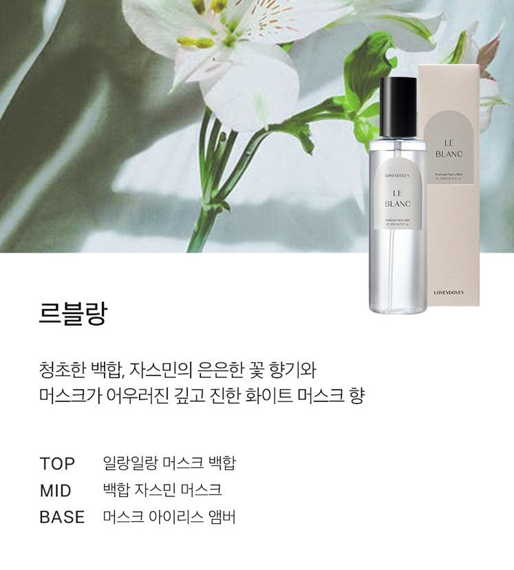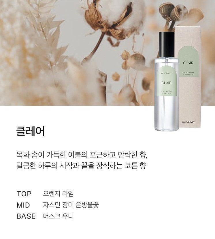 [Lovey Dovey] Fabric Perfume Mist 200ml 9-fragrances deodorization antibacterial Vegan Eco-friendly Green Formula Ecocert EWG Green / from Seoul, Korea