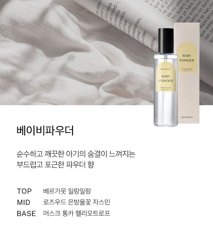 - Soft and cozy powder scent that feels pure and clean baby's breath