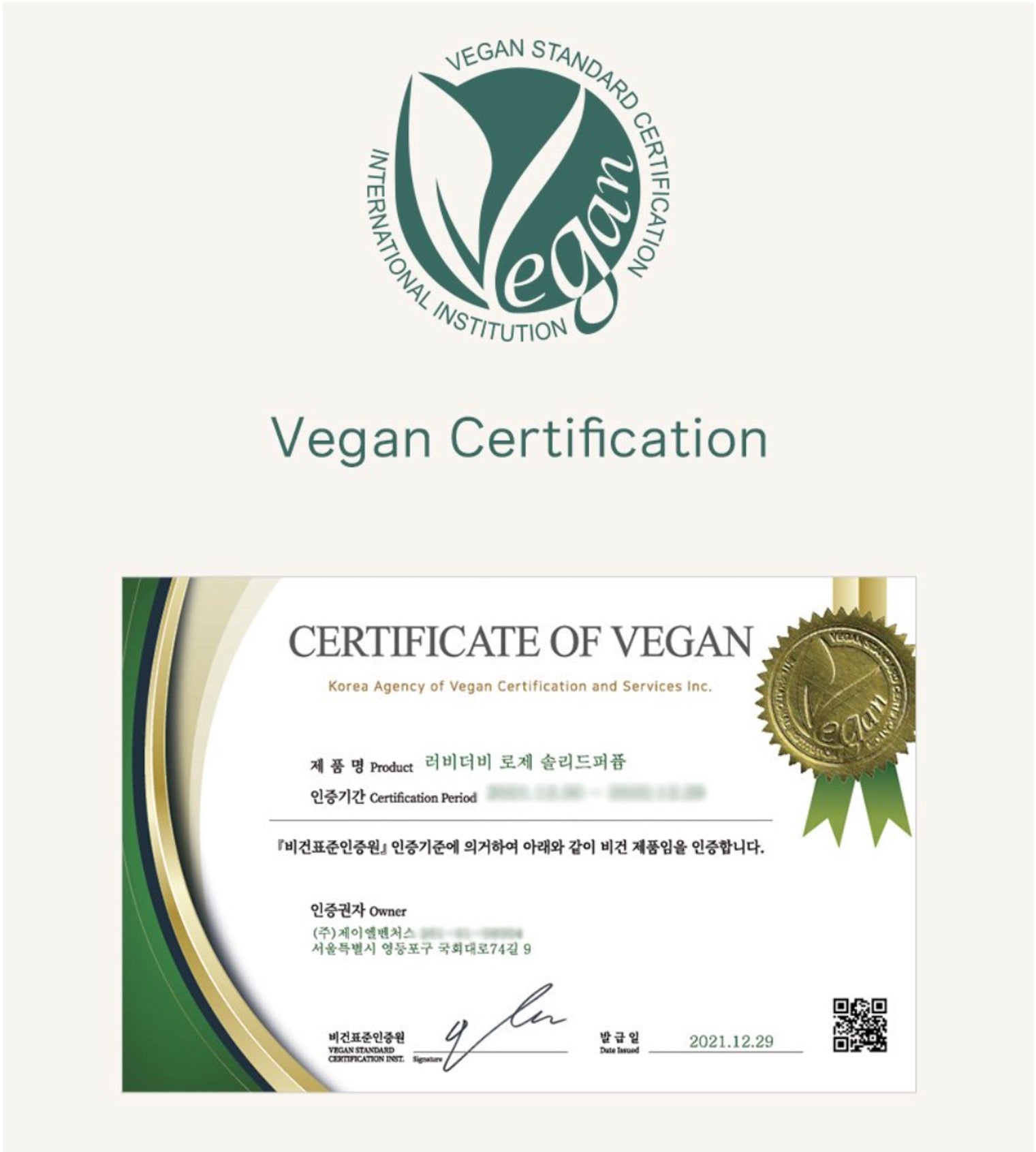 1. All products vegan certification