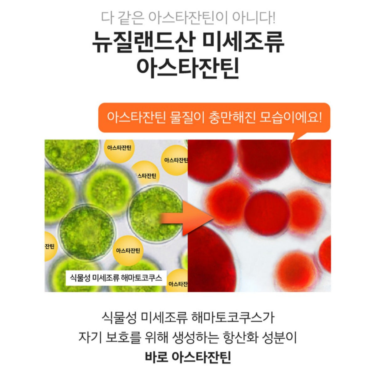 - Contains astaxanthin from New Zealand microalgae (antioxidant)